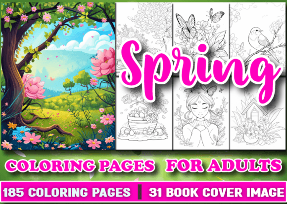 Spring Coloring Pages for Adults β 185 Printable PDF Bundle + 31 Covers (Stress Relief & Creative Fun)