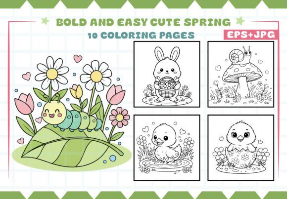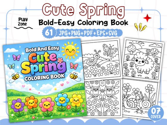 Cute Spring Coloring Book Bundle β 61 Bold & Easy Printable Pages for Kids, Etsy & KDP Sellers