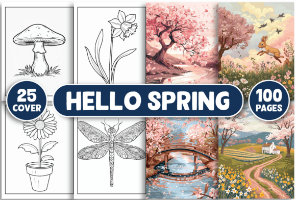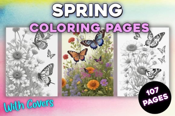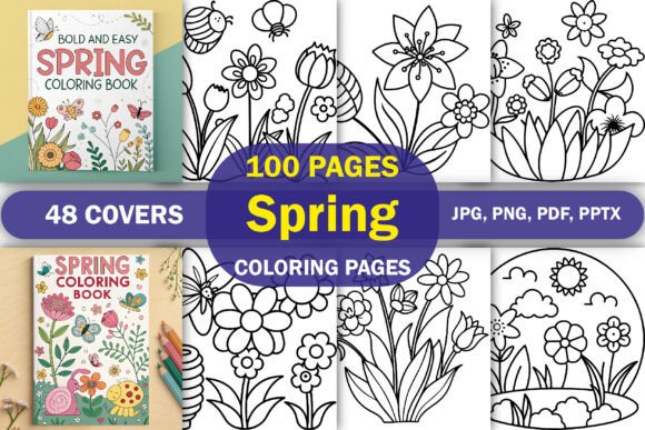 100 Spring Coloring Pages Printable Bundle + 48 Covers (PDF, PNG, JPG) for KDP, Etsy & Kids Activities
