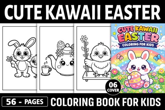 Cute kawaii Easter coloring pages printable for kids β instant download PDF