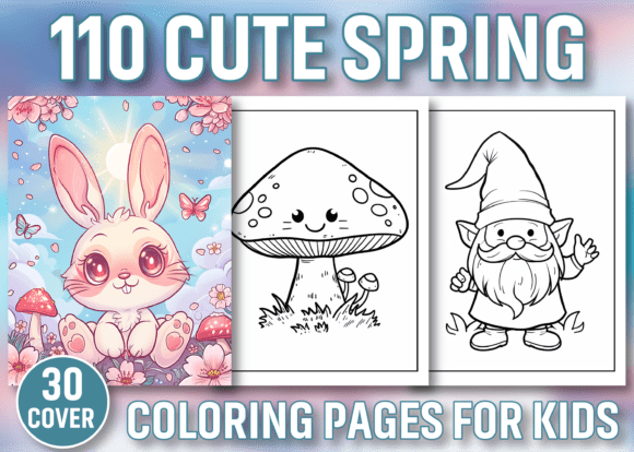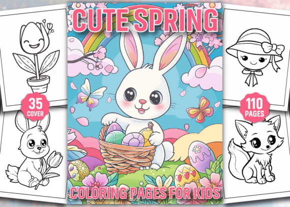 Cute Spring Coloring Pages Bundle β 110 Printable Coloring Sheets + 40 Covers | Kids & Adults PDF