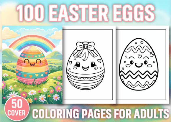 100 Easter Egg Coloring Pages Printable PDF β Cute Kawaii Designs + Covers Bundle (300 DPI)